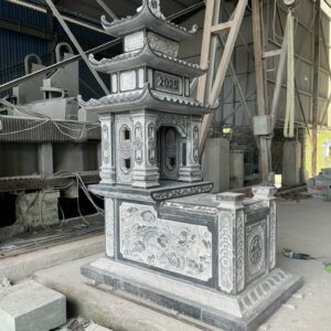 Mộ đá 3 mái là kiểu mộ được chế tác từ đá tự nhiên nguyên khối, có ba tầng mái chồng lên nhau. Cấu trúc này không chỉ tạo cảm giác bề thế, vững chắc mà còn thể hiện sự trường tồn, phù hợp với quan niệm “tam tài” trong phong thủy: Thiên – Địa – Nhân.